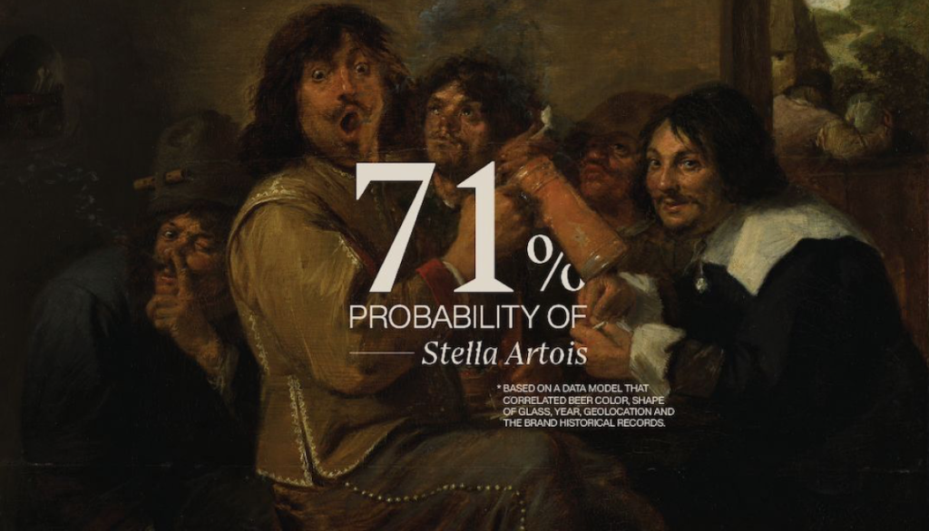 A két adathalmaz összevonásával egyre csak szűkült a kör, végezetül pedig a Bellas Artes Múzeummal közreműködve létrehozták a Probability kampányt, amelyen a kritériumoknak megfelelő festmények vagy részleteik jelennek meg, hozzá pedig a kiegészítő szöveg, amely megjelöli, hogy százalékosan mekkora esély van arra, hogy a képen Stella Artois sör lett megfestve. Breugel, Brouwer, Teniers, Van Gogh és Monet művei is a kampány részei. A szóban forgó műveket a kültéri plakátok és különféle hirdetések mellett a Bellas Artes Múzeumban is kiállították. A múzeumi látogatók egy applikáción keresztül vizsgálhatták és kereshették a söröket és a logót.