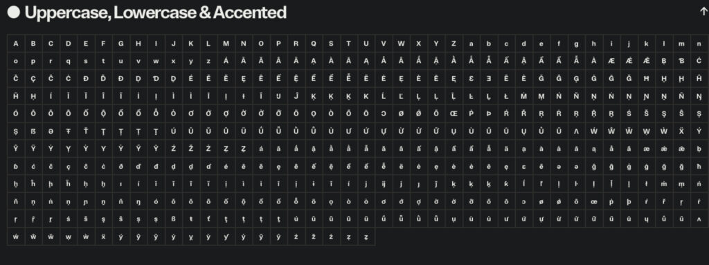 A teljes betűkészlet: támogatja a magyar nyelvet is.