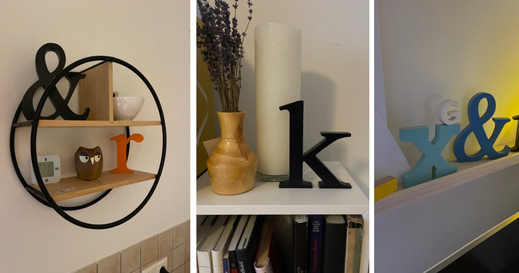 Az egyik, hogy nálunk itthon tele a lakás betűkkel. Ez egy szokásom, vagy mániám, ha látok valahol fizikai betűket, amelyeket meg lehet vásárolni, akkor megveszem. (JYSK, IKEA, Flying Tiger). Fogtam egy párat és elvittem a helyszínre és körbeadtam, hogy nézegessék, lássák közelről, hogy a betűknek milyen részletei arányai vannak. Nem sokszor tapogathatunk tipográfiát, igaz? Most itt volt a lehetőség.