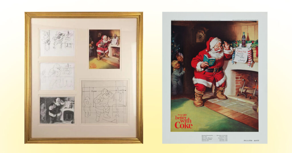 1964-ig használták Sundblom képeit, melyek az évek során már komplett jeleneteket ábrázoltak arról, ahogy a Mikulás viszi az ajándékokat, miközben meglesik a gyerekek: előkerült a kémény és a csokis keksz is, mint közismert szimbólumok. Sundblom képei olajfestmények voltak, és a mai napig szervez kiállítást belőlük a Coca-Cola olyan helyeken, mint például a Louvre.