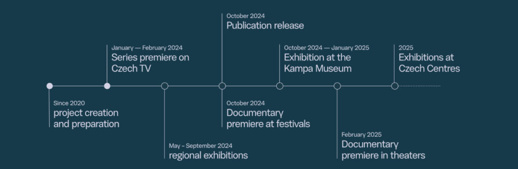 A program 2024-ben indul útjára, azonban a munkálatokat már 2020-ban elkezdték, hogy mindez mára megvalósuljon. A honlapon végigkövethetjük egy idővonal segítségével, hogy mi a soron következő esemény, ami várható: a legközelebbi pont a tévésorozaté, amit január-február magasságában kezdenek sugározni a cseh állami televízióban.