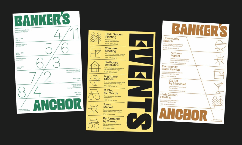 Az egyedi betűtípusok eredete gyakran inkább kreatív, mint technikai természetű – olyan betűformákra van szükség, amelyek a márka fizikai környezetét, érzelmi tónusát vagy sajátos szellemiségét tükrözik. A brooklyni R&M dizájnstúdiómunkája a Banker’s Anchor számára – egy greenpointi Pláza – szemléletesen mutatja, mennyire hasznos lehet a személyre szabott betűtípus mint összekötő elem forma és eszme között. A projekthez a stúdió kifejlesztette a Triad betűtípust, amelynek háromszögletű belső terei és keresztezett körvonalai a tér valódi háromszög alakú lábnyomára utaltak – olyan sajátos geometria, amelyet egyetlen létező betűtípus sem tudott volna megragadni. Ryan Bugden társalapító megfogalmazásában: