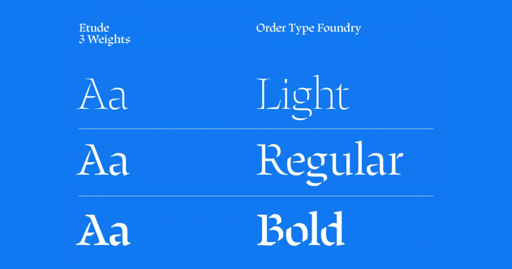 Etude-nek nevezte el Emily Atwood, a brooklyni székhelyű Order design stúdió egy munkatársa azt a betűtípust, amit a kísérletező zenei megoldások inspiráltak a tervezés folyamata során. A névadás azonban nem volt a kezdetektől ennyire egyértelmű: munkacímnek a Notation nevet adta a fontnak, de ezzel kapcsolatban úgy nyilatkozott Elissaveta-nak, hogy a kezdetektől érezte, hogy nem lesz jó, nem passzol majd a végeredményhez.