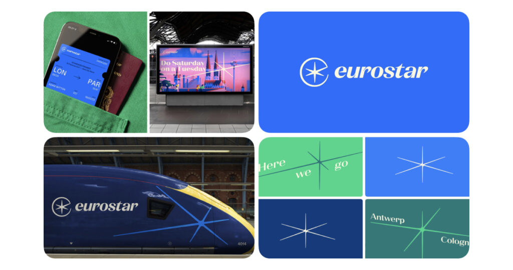Ahogy már korábban írtunk róla, a kék a megbízhatóság színe a branding világában, legalábbis ezt a benyomást kelti. Így nem meglepő, hogy a kék több árnyalatát is bevonta az arculatba a DesignStudio, akik az Eurostar rebrandet létrehozták.