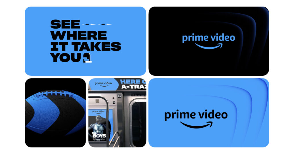 A Prime Video színe szintén a kék, amelyet az arculatban leggyakrabban a feketével kombinálnak. A logó mozgó része az alatta található nyíl, ami egy mosolyt idéz – ugyanezt a motívumot megtalálhatjuk az Amazon logójában is, finoman utalva a két brand testvériségére.