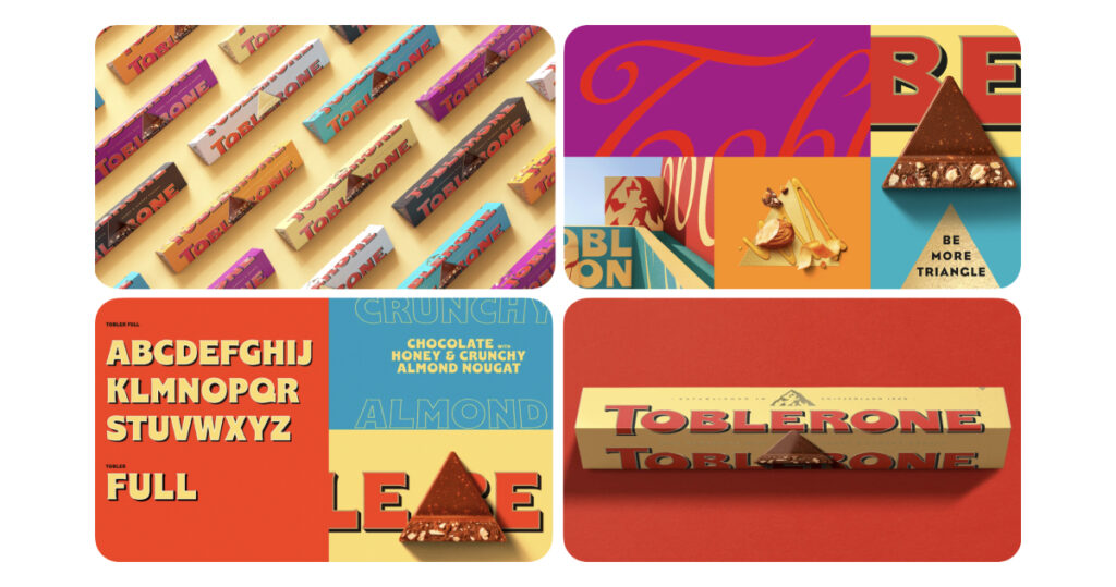 A Toblerone az első élelmiszeripari vállalat a listán: változtattak a sötétebb, az új mellett antiknak tűnő logón, és egy világosabb pirosat kapott a Toblerone felirat.
