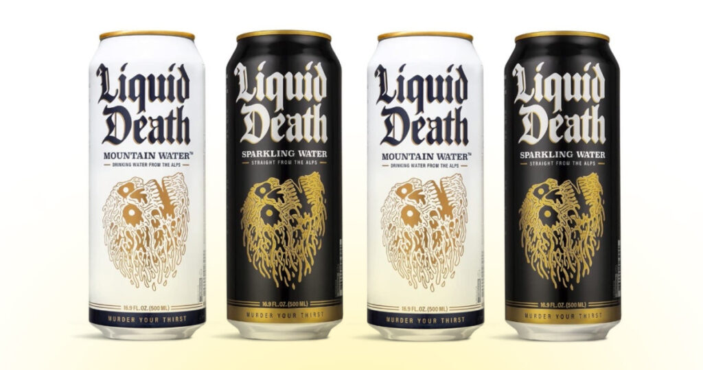 A Liquid Death egy „kihívó” ásványvízmárka. Az álmoskönyv szerint az ásványvizet átlátszó palackokban kell árulni, hogy mindenki láthassa, milyen tiszta és áttetsző. A Liquid Death a sajátját “sörös” dobozokban árulja.