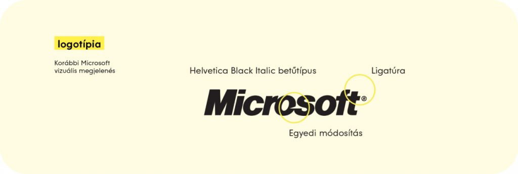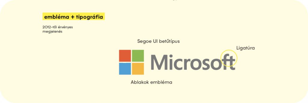A lent látható példában a Microsoft korábbi arculata csak logotípiából állt, míg a frissített arculatnak már része egy embléma is: a négyszínű négyzet.