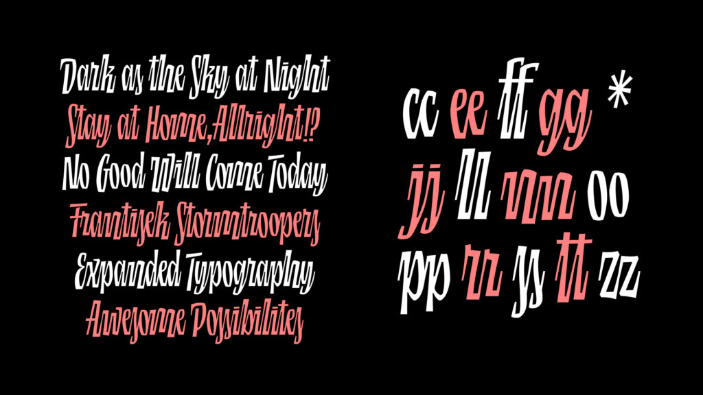 Persze a formai különlegességek alapján tervezés nem a legjobb stratégia a betűtervezés területén hogyha maximális olvashatóságra vagy használhatóságra törekszünk. Viszont ez az állítás fordítva is igaz, a jól használható/olvasható betűk önerőből ritkán keltenek az emberben érdeklődést.