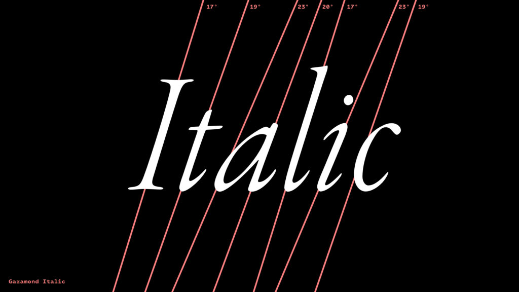 Ezt a másik koncepciót a reneszánsz és barokk italic karakterek dőlésszögeinek vad változatossága ihlette, amelyeket a legtöbbször a betű végződések körüli negatív tér kompenzációja és a hosszabb szárakkal kapcsolatos optikai csalódás indokolják, de a tervező, Tibor számára a leginkább az ebből eredő ‘ritmus a ritmusban’ jelenség, vagy poliritmika nyújtotta az érdekességet.
