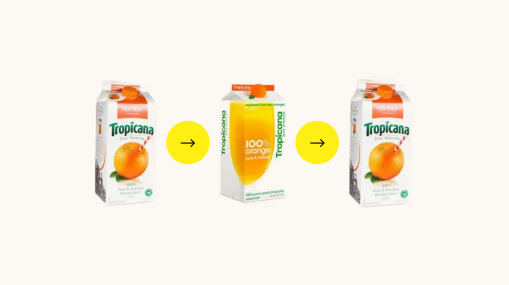 Tropicana (2009): Újratervezték a csomagolást, az értékesítés 20%-kal zuhant azonnal, 30 millió USD veszteség – 60 napon belül visszaállították.