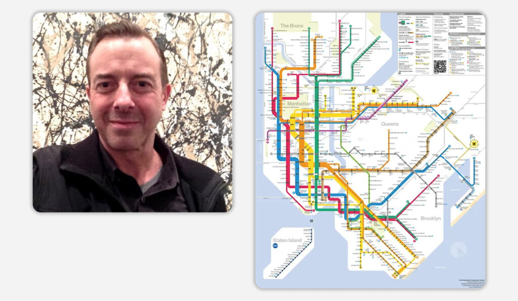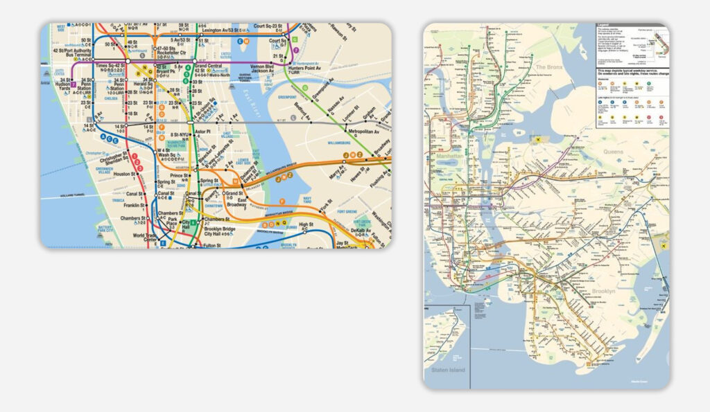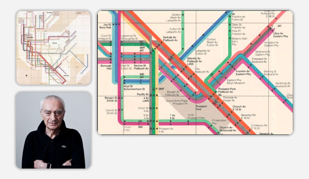 1972-ben az olasz Massimo Vignelli kapott megbízást a térkép megtervezésére. Az általa tervezett térkép a modernista dizájn ikonikus példája: letisztult, harmonikus, mégis működő, informatív.