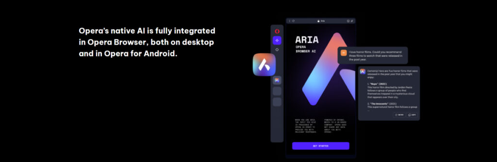 Emellett beépült a mesterséges intelligencia is az alapértelmezett, könnyen elérhető programok közé: az oldalsó sávból könnyedén megnyitható az Opera saját AI szervere, az ARIA, mellé pedig bekerült a Chat GPT.