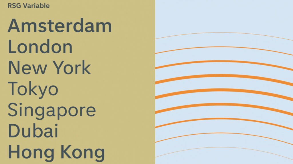 És itt jön még egy izgalmas részlet: kifejezetten a Schiphol számára fejlesztettek egy betűtípust: az RSG Variable-t (Royal Schiphol Group Variable), amelynek variációi használhatók a repülőtér összes szövegéhez: kereskedelmi és informatív célra egyaránt, magától a Schipholtól és partnerszervezetektől, mint a Schiphol Parking, Schiphol Media vagy Schiphol Real Estate.