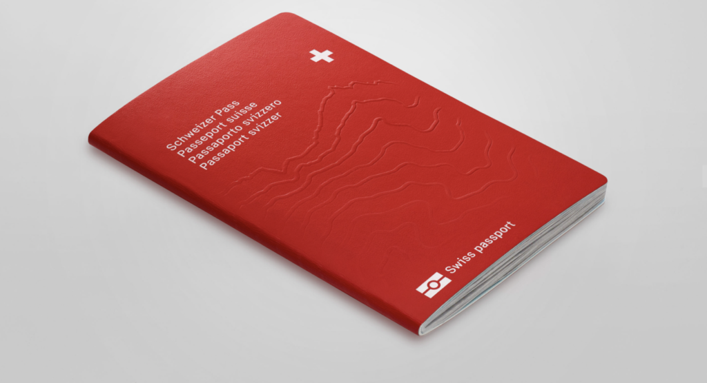 Az új svájci útlevél designja Svájcot tükrözi: hagyományos, de egyben kozmopolita is. A víz formálja a svájci tájat, szimbolizálja az életet és a mozgást. Az útlevél virtuális utazásra hívja az ország 26 kantonját, az alpesi csúcsoktól a völgyekig. Első alkalommal szentelnek oldalt „Az ötödik Svájcnak”; azaz a külföldön élő svájci állampolgárok közösségének. A dokumentum első oldala a Pizzo Rotondót, a Gotthard-hegység legmagasabb hegyét ábrázolja. Itt találhatóak Svájc legnagyobb folyóinak forrásai.